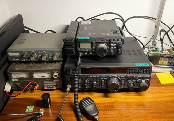 Jyh-Min’s radio station is centered around Yaesu equipment, including both the FT-897 and FT-950 transceivers, paired with a Yaesu FC-707 antenna tuner, and a 20m end-fed dipole antenna.