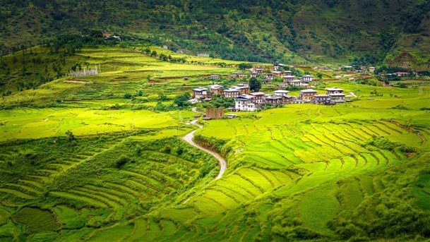 I take a long riverside walk into Paro. Rice fields, water-driven prayer wheels, and the valley carved like a postcard.