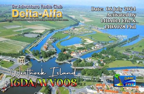 DA-RC HQ can reveal that the name of the IWI dxstination is Westhoek and the callsign will be 16DA/WV-008 with the latter part of the callsign being the regional reference for this island.